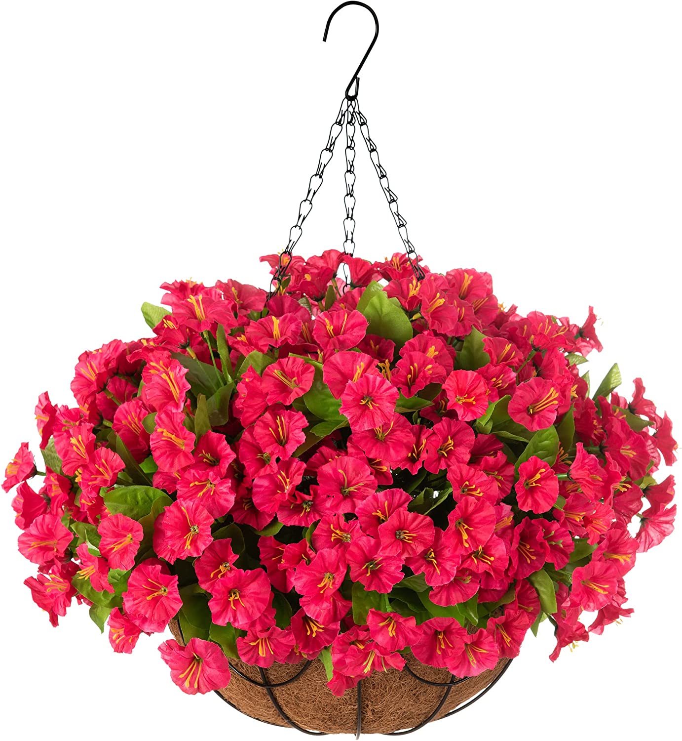 - Fake hanging flower in a basket looks real and stylish, making it the perfect hanging basket for your home, patio, balcony, garden, indoor and outdoor. It blooms all year and adds a sense of spring to your home.